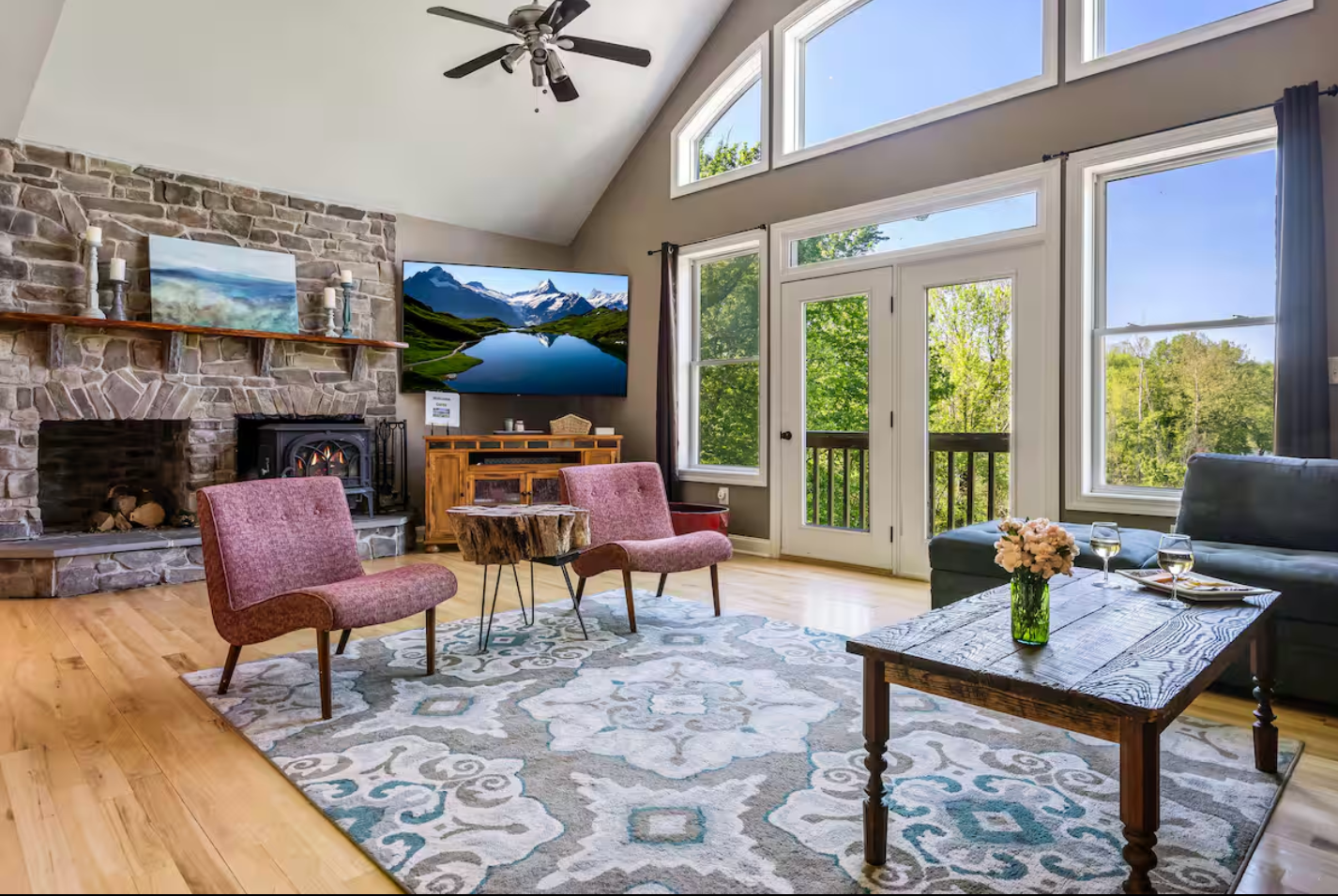 A luxury riverfront escape, tucked into nature at the height of fall foliage — private, expansive, and unforgettable.
